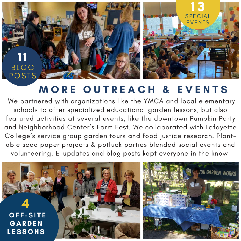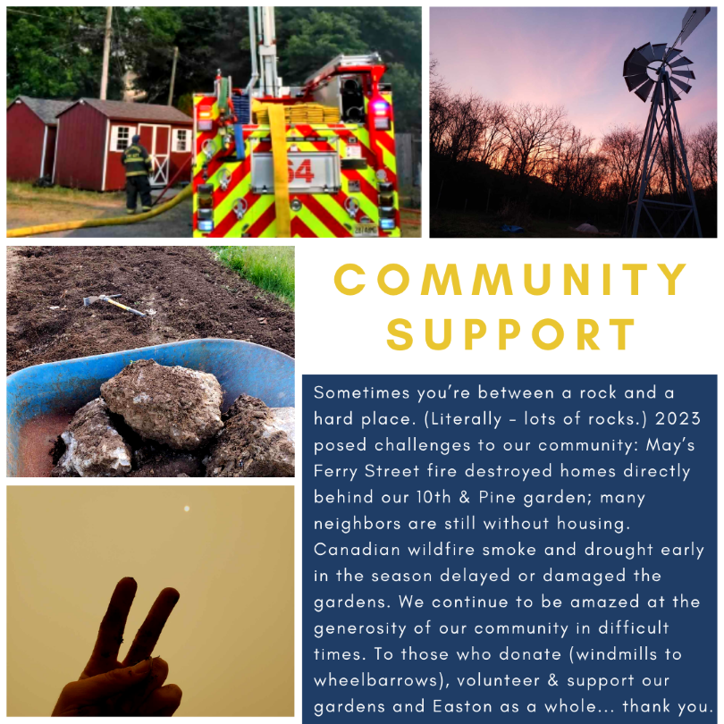 What sums up 2023 in the gardens? More seedlings, lots of West Ward dance moves, a new garden, happy worms & unhappy groundhogs, and an array of volunteers and neighbors from all walks of life. Easton’s a special place. We’ve had another year to prove it.