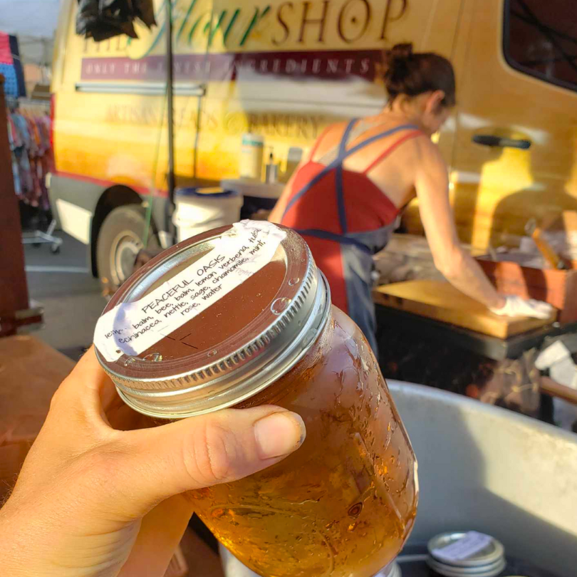 Yep, Flour Shop sells refreshing iced tea in mason jars at the West Ward Market. Grab a drink and take a stab at making your own at home. Flour Shop steeps lemon balm, bee balm, lemon verbena, tulsi, echinacea, nettle, sage, chamomile, mint and rose! Stop by Flour Shop and ask Mary about how she does it and taste one for yourself.