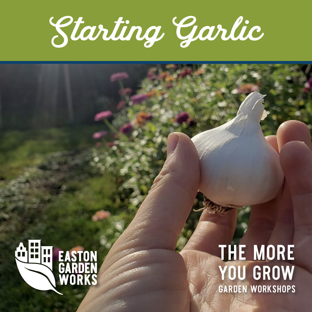 We wrangled some volunteers to plant garlic at our end-of-the-season potluck party in October. Super easy, even the kids helped out for this mini workshop. For starting garlic in fall, read instructions below.