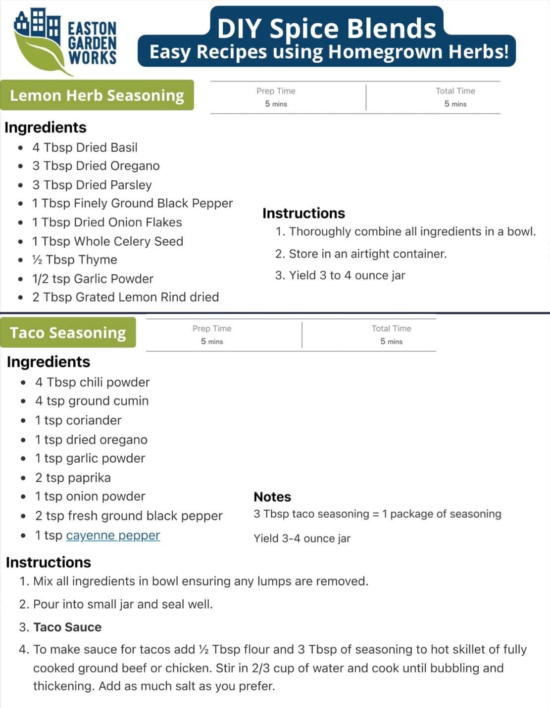 Week 2: Homemade spice blends kits