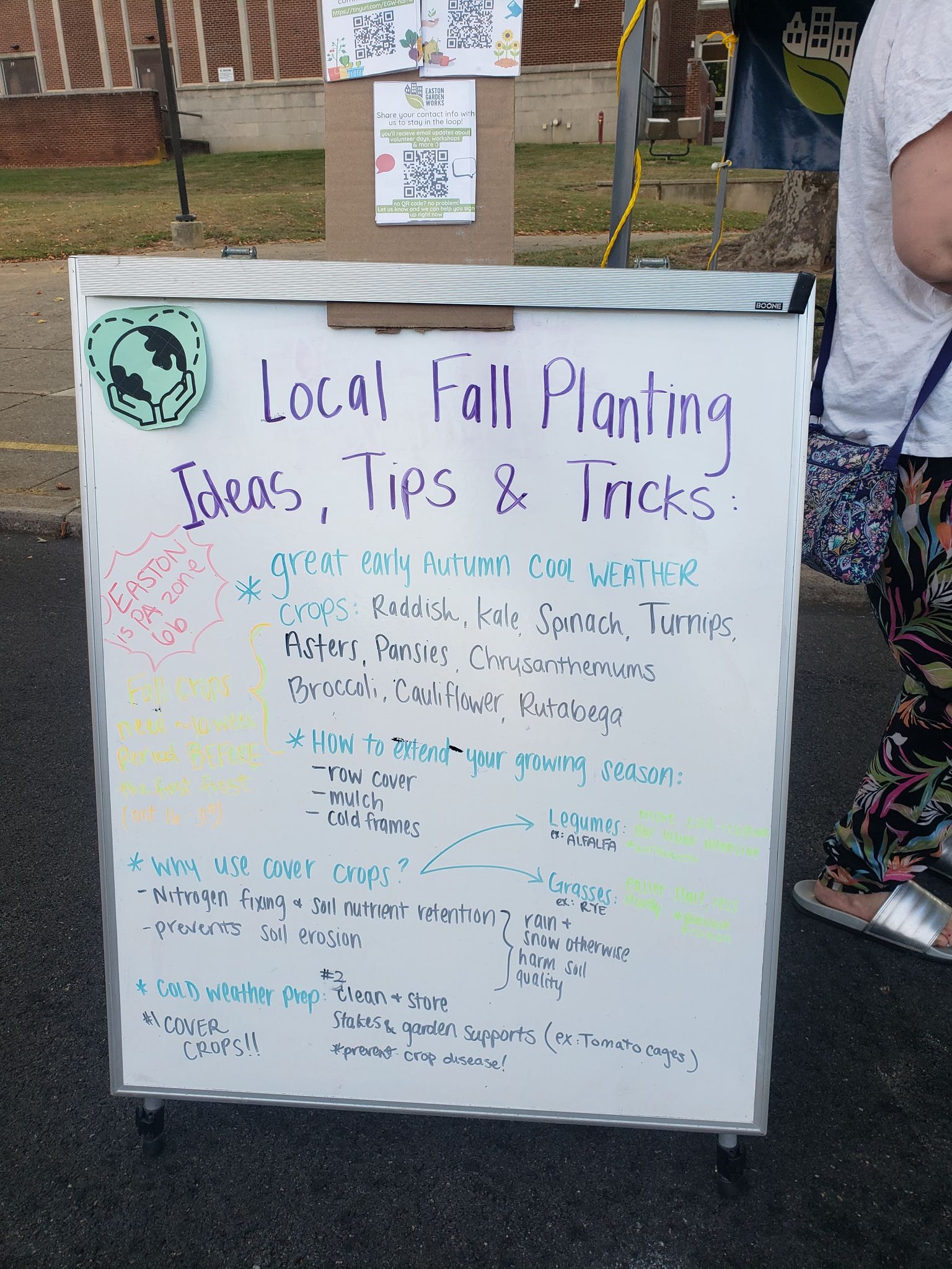 The Easton Compost Program allows City residents to collect and tip their food scraps to divert waste from the landfill (and emissions related to it); or, you can compost in your own backyard. That week’s lesson included a sorting game to toss recyclables, food waste, and trash into the correct bins.