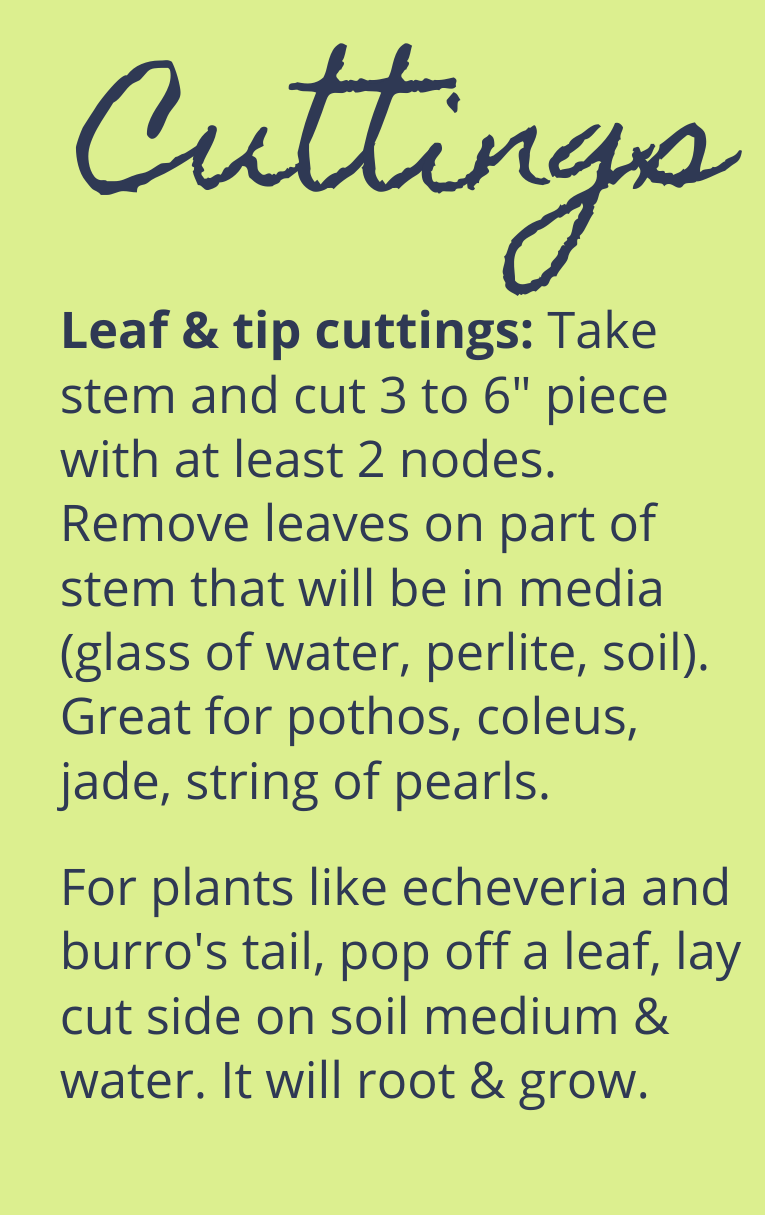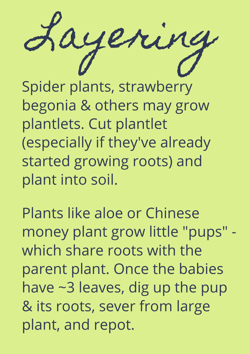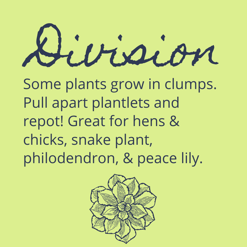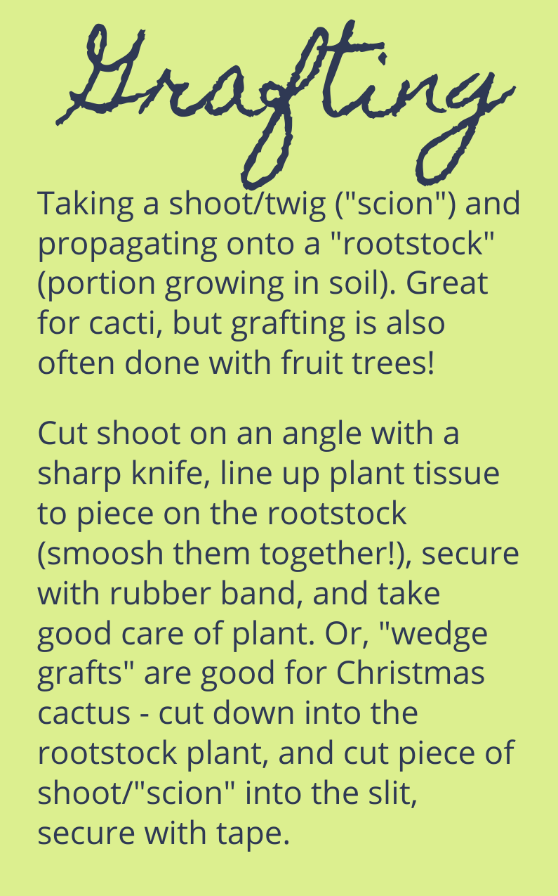 Another important lesson was that not only houseplants can be propagated – but tomato plant cuttings and canna lily bulb division follow the same methods. You better believe we brought tomato plants to try out too. Below are some brief instructions on cutting, dividing, layering, or grafting – four styles of propagation.